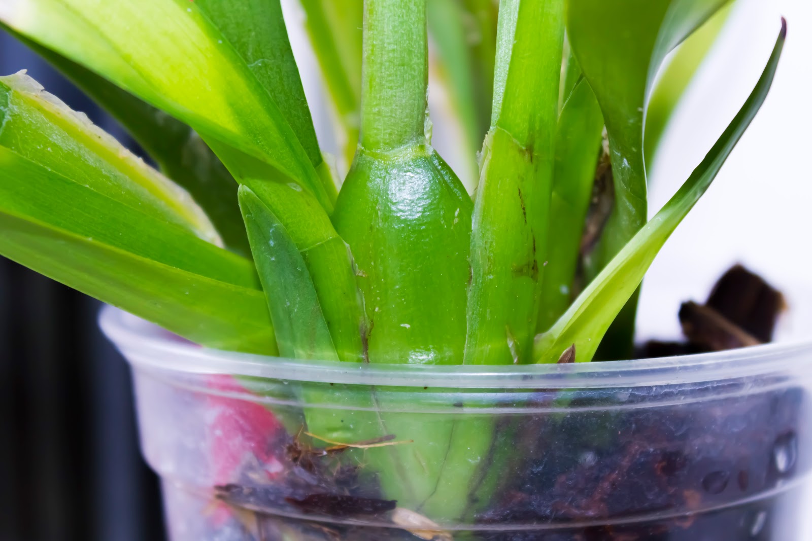 Its foliage is blemished and its pseudobulbs reduced, but my Oncostele Pacific Perspective is finally showing a definitive sign of recovery. After over a year of false starts, this orchid has grown roots that are long and healthy, and reaching the bottom of the pot.